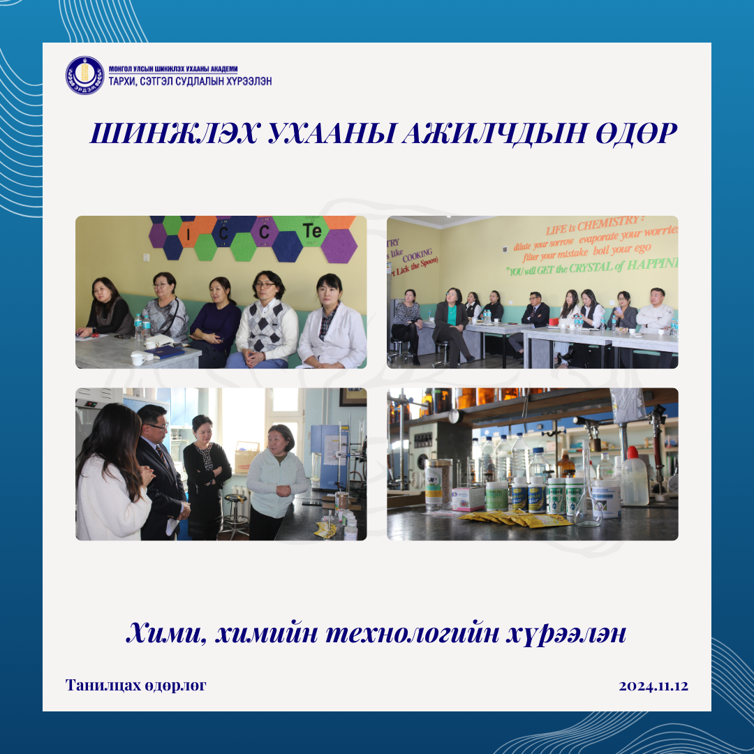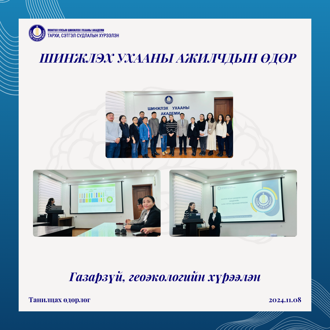 Энэхүү ажлын хүрээнд Газарзүй, Геоэкологийн хүрээлэн, Философийн хүрээлэн, Хими, химийн технологийн хүрээлэнгийн үйл ажиллагаа болон судалгааны чиглэлүүдтэй танилцаж туршлага солилцлоо.