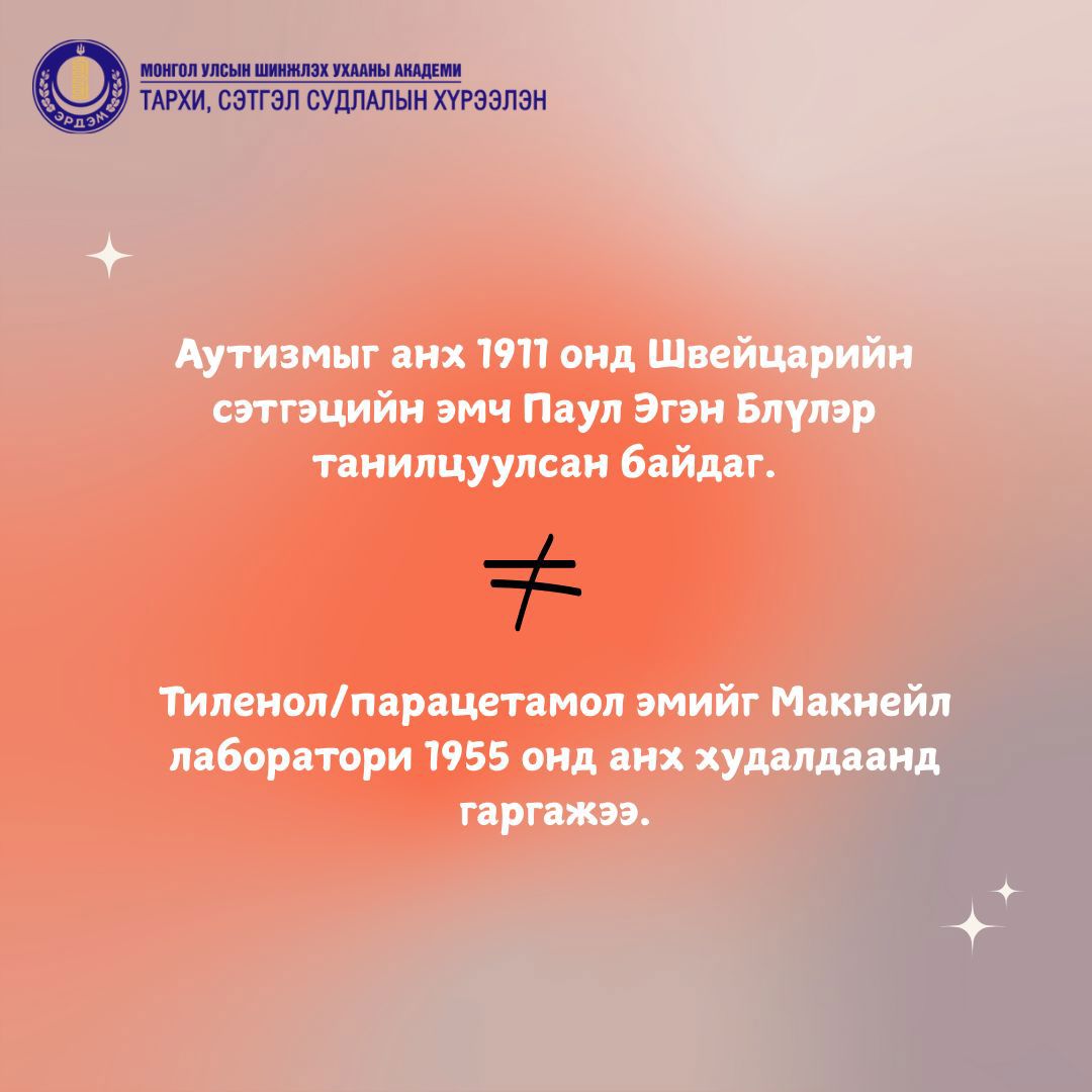 Сүүлийн үед олон нийтийн мэдээллийн хэрэгслээр “Тиленол нь аутизмын шалтгаан болж байна” гэх мэдээлэл гарч буй ч энэ нь шинжлэх ухаанаар бүрэн нотлогдоогүй, ташаа ойлголт юм. Эм зүйн салбарт ашиглагдаж буй эмүүд нь олон арван жилийн туршид хийгдсэн судалгаа, аюулгүй байдлын үнэлгээнд тулгуурлан үйлдвэрлэгдэж, борлуулагддаг. Тиймээс аливаа мэдээллийг хүлээн авахдаа шинжлэх ухааны нотолгоонд тулгуурлах нь чухал.
